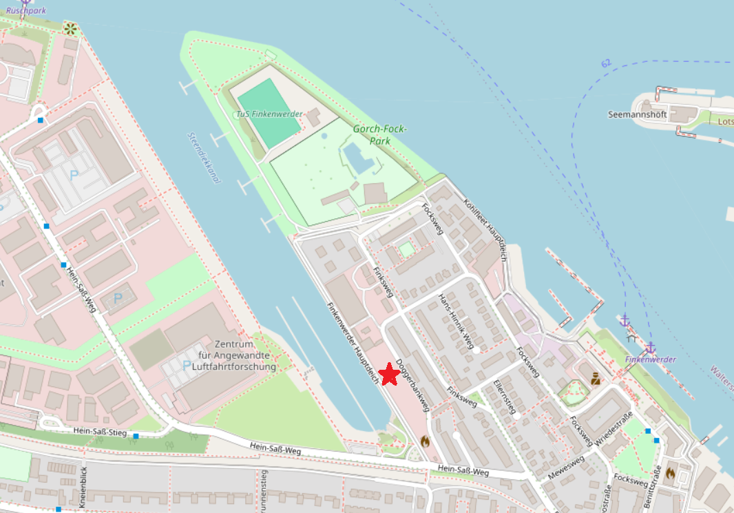 Unser Grundstück liegt auf der Halbinsel, an der auch der Fähranleger Finkenwerder angeschlossen ist. Innerhalb weniger Minuten ist man zu Fuß am Doggerbankweg. Der Neubau wird direkt hinter dem Deich nach Südwesten ausgerichtet sein.